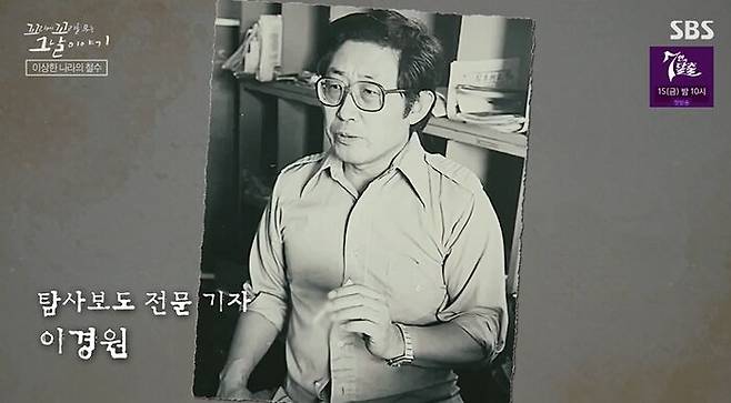 바로 탐사보도 전문기자 이경원. 미국 일간지 최초의 한국인 기자야. 별명이 '형사 콜롬보'로, 각종 사건과 사회문제를 끝까지 파헤치는 베테랑 기자였어.