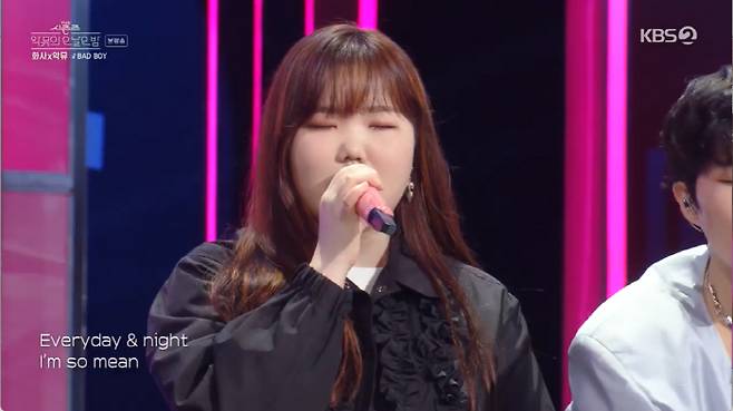 악뮤와 데뷔 동기라는 첫 번째 게스트는 바로 가수 화사였다. 솔로곡 '멍청이'를 열창한 화사을 이수현 이찬혁이 반갑게 맞았다.