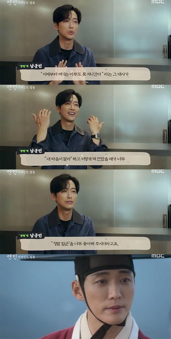 특히 극중 닿을 듯 닿지 않는 연인의 애절한 사랑을 섬세하고도 깊이 있는 연기력으로 담아내며 '연인' 인기 견인차 역할을 톡톡히 한 남궁민과 안은진의 비하인드 스토리도 공개됐다. 남궁민은 "대본을 처음 봤을 때부터 '이제부터 여기는 아무도 못 지나간다'라는 대사가 제일 멋지게 느껴졌다"라며, "'내 마음이 달라'하고 딱 안았을 때가 너무 감독님께서 연출을 잘해주시고, 편집을 너무 잘해주셔서 예쁘게 잘 나온 것 같다. 또 정말 예상 못한 곳이었는데, "정밀 밉군"을 좋아해주시더라"며 세 장면을 명장면으로 꼽았다.