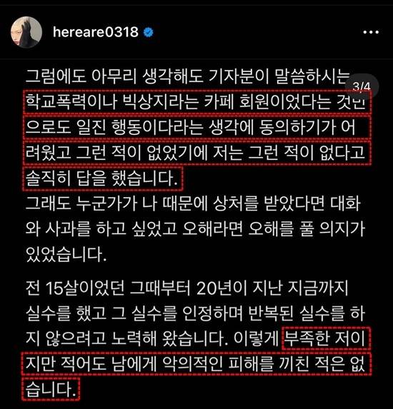 그리고 지난 6일, 김히어라의 과거가 터졌다. 그는 엉뚱하게, "학폭은 없었다"고 반박했다. ('디스패치'는 학폭을 언급한 적이 없다.)