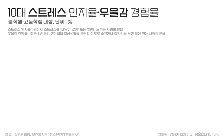 질병관리청이 지난 4월 발표한 '제18차 청소년 건강행태 조사'를 살펴보면, 2020년 25.2%였던 청소년 우울감 경험률이 지난해는 28.7%로 3.5%p가 증가했고 스트레스 인지률도 34.2%에서 7.1%p 증가한 41.3%로 나타났습니다.