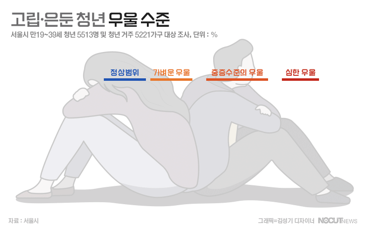 20·30대는 경제적 어려움에 사회적 고립으로 이어지고 우울증이 자살로까지 이어지게 되는 경우가 대부분입니다. 독거노인에게나 적용되던 사회적 고립·은둔이 청년층에게까지 번지고 있는 것입니다.