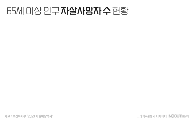 2021년 국내 65세 이상 노인의 자살사망자 수는 3619명입니다. 최근 5년까지 범위를 넓혀도 매년 3천여명이 나오고 있습니다. 자살률은 줄어들고는 있으나 다른 나라와 비교하면 여전히 높은 42.2명입니다.