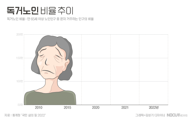 지난해 65세이상 1인 가구수가 187만 5270명이고 비율은 20.8%로 2021년보다 0.2%p 증가했고 앞으로도 독거노인 비율이 더 늘어날 것으로 보고 있습니다. 이들에게 경제적 지원 뿐 아니라 다양한 측면에서 주의를 기울여야 합니다.