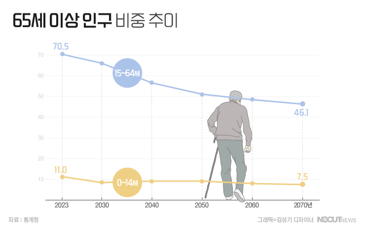 통계청에 따르면 우리나라의 65세 이상 노인 인구 비중은 2023년 기준 18.4%에서 오는 2025년에 20.6%로 올라가면서 초고령사회로 진입할 것으로 내다봤습니다. 국제 기준상 65살 이상 인구 비중이 14% 이상이면 고령사회, 20% 이상이면 초고령사회라고 부릅니다.
