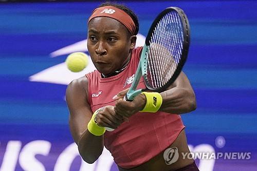 Coco Gauff, of the United States, returns a shot to Aryna Sabalenka, of Belarus, during the women's singles final of the U.S. Open tennis championships, Saturday, Sept. 9, 2023, in New York. (AP Photo/Charles Krupa)