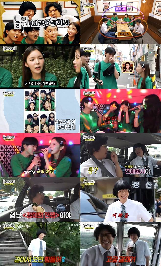9월 9일 방송된 MBC ‘놀면 뭐하니?’(연출 김진용, 장우성, 장효종, 왕종석/작가 최혜정)에서는 ‘놀뭐 대행 주식회사’ 첫 의뢰를 나선 ‘사원즈’ 유재석-하하, ‘인턴즈’ 주우재-박진주-이이경-이미주의 모습이 그려졌다. 클래식한 남산 코스를 추천한 유재석은 땀을 뻘뻘 흘리며 남산을 걸어 올라가는 대리 체험을 선보였고, 힙한 성수동 코스를 준비한 ‘인턴즈’는 썸남썸녀 상황극에 몰입해 더블 데이트를 펼쳤다.