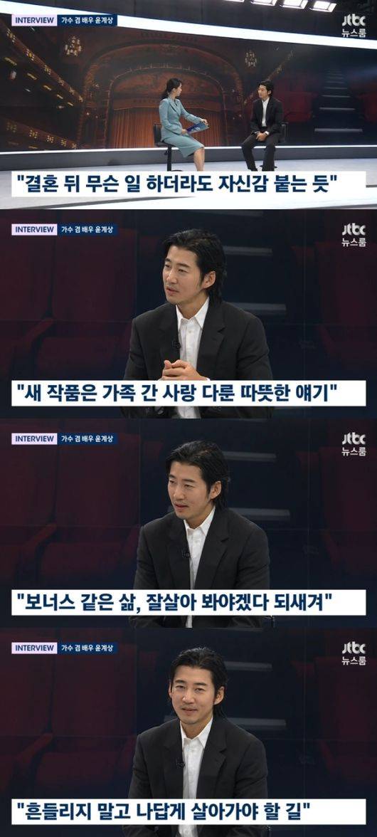 지난해 5세 연하의 뷰티 CEO 차혜영씨와 결혼식을 올린 윤계상은 "안정감 있냐"는 질문에 "너무 있다. 뭔가 편안한 마음이 훨씬 크다. 무슨일을 하더라도 뒤에 제 식구가 있다는 생각때문에 자신감도 붙는것 같다"고 전했다.