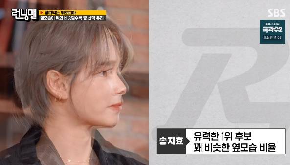 아니나 다를까, 뷔는 가장 닮은 사람으로 송지효를 뽑아 송지효가 1위가 됐다.