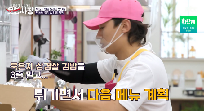 덱스는 먼저 온 주문부터 차분히 조리를 시작했다. 튀김 조리를 하는 동안 김밥 네 줄을 뚝딱 완성했다. 거기에 치킨까지. 덱스는 쉴새없이 튀김 공장을 가동했다.