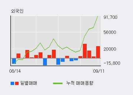 ◆ 주체별 매매동향- 외국인 5일 연속 순매수(7.9만주)지난 한달을 기준으로 보면 외국인이 9.2만주를 순매수했고, 기관도 6.9만주를 순매수했다.