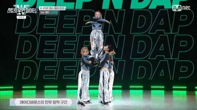 레이디바운스는 '안무 카피 능력자' 카프리를 필두로 수월하게 미션을 준비해 나갔다. 반면 딥앤댑 리더 미나명은 "합이 잘 맞을까 걱정됐다"며 레이디바운스의 고난도 리프트에 걱정을 드러냈다.