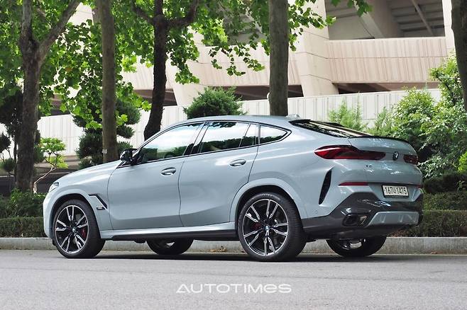 옆은 기존과 크게 다르지 않다. 상대적으로 높은 벨트라인과 진한 캐릭터라인, 완만하게 내려 앉은 루프, 펜더에 붙은 장식도 동일하다. 22인치 휠 정도가 달라졌는데 살이 얇은 Y스포크 타입으로 신형다운 느낌을 살렸다. 뒤는 크게 건들지 않았다. 그도 그럴 것이 원래 X6의 뒤태는 완벽했기 때문이다.