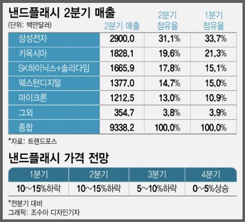 2분기 글로벌 낸드플래시 매출을 전년도가 아닌 직전 분기와 비교하면 7.4% 증가했다.