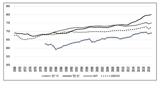 | ▲ 주요 선진국 15~64세 경제활동참가율 |