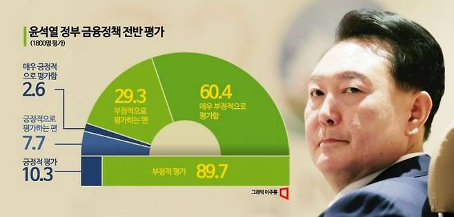 우선 지난 1년간 윤석열 정부 금융정책 전반에 대해서는 89.7%가 부정적으로 평가했다.