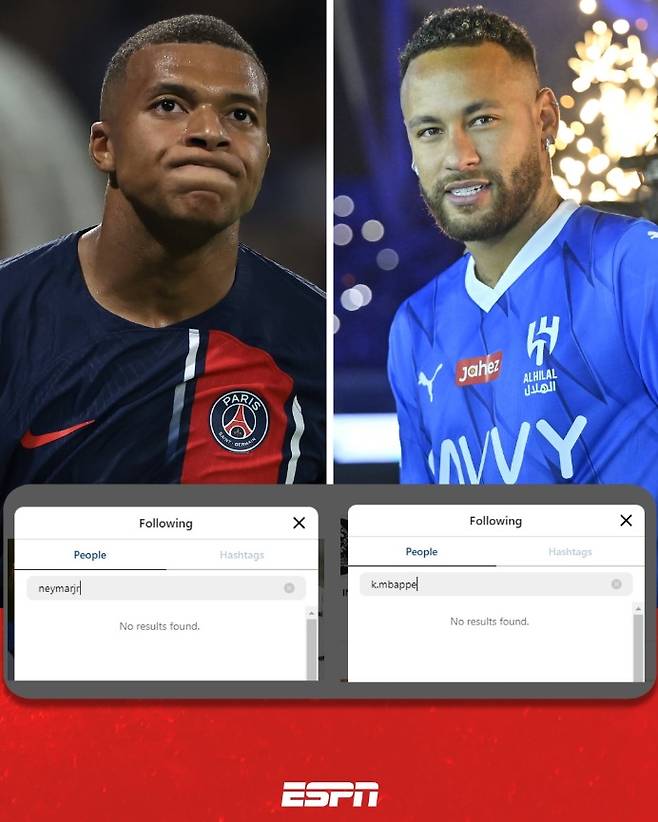 한때 팀 동료였던 네이마르(알 힐랄)와 킬리안 음바페(PSG)가 SNS에서도 관계를 단절했다.