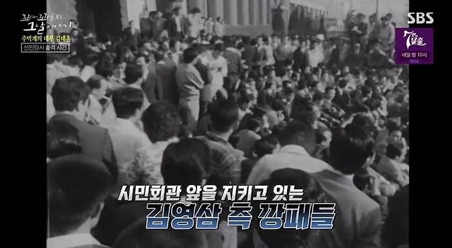 1976년 5월 25일, 대망의 신민당 전당대회 날. 새벽부터 시민회관 앞에 김영삼 측 깡패들이 진을 치고 서있어. 그리고 뒤늦게 도착한 김태촌 쪽 깡패들이 몰려 오며 시민회관 앞은 순식간에 아수라장이 돼. 승리한 쪽은, 김태촌이었어. 김영삼 쪽 깡패들은 완전히 초죽음이 됐어. 김태촌은 비장의 무기를 준비했거든. 바로 피켓이야.