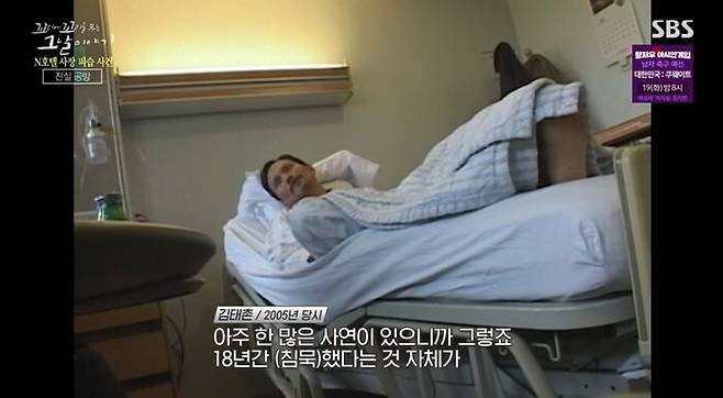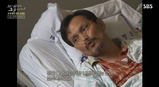 결국 김태촌은 형집행정지로 감옥에서 나오게 돼. 암이 심장벽까지 전이돼 왼쪽 폐를 통째로 제거하는 대수술을 받아야 했거든. 김태촌의 수술은 성공적으로 끝났어. 그럼, 새 삶을 얻은 김태촌은 이제 좀 달라졌을까?