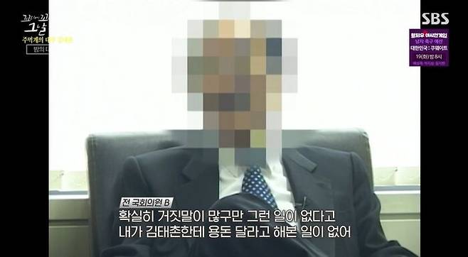 "확실히 거짓말이 많구만 그런 일이 없다고. 내가 김태촌한테 용돈 달라고 해본 일이 없어. 김태촌이 조직폭력배로 구속되고 그래서 우리가 구체적으로 알지 그전엔 모르지."