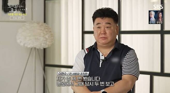 "제가 총 세 번 봤습니다. 병원에서 그 때 당시 두 번 보고, 형님 병원에서 잠깐 나오셔서 전체 식구들 식사를 누나가 하자고 해서 식사했을 때, 박 검사 소개할 때 (봤어요) 박 검사가 좀 미안한 투로 많이 이야기한 것 같더라고요. 지금 기억해 보면. 그 사람 가고 나서는 (김태촌이) 좀 짜증스러운 표정도 많이 하고. 그런데 이제 (박 검사가) 누나한테 용돈 좀 챙겨줬다고 말씀하시더라고요. 형님은 이렇게 얼마 주는데 안 받으니까 누나한테 줬을 거 아닙니까. 얼마 들어있는지는 우리는 사실 모르고."