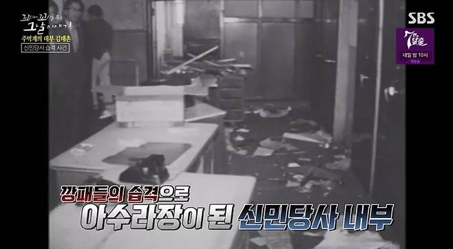 다급해진 의원들이 김 총재를 창 밖으로 떠민거야. 근데 옆집 슬레이트 지붕이 구멍이 나면서, 김 총재의 한쪽 다리가 빠진 거야. 같이 뛰어내린 의원들이 김 총재를 겨우 빼서 병원으로 데려갔어. 이 모습을 본 김태촌의 반응은? 사실 김태촌의 목표는, 김영삼 총재가 아니었어. 김태촌은 뭔가를 빼앗기 위해 이 당사를 습격한 거였어. 바로, 총재가 당 대표로 의사결정을 할 때 쓰는 도장인 '신민당 직인'이었어. 이 날의 습격사건은 'YS 낙선공작'이었어. 며칠 뒤에 신민당의 새 지도부를 뽑는 전당대회가 예정돼 있었거든.