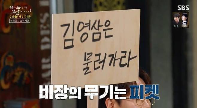 피켓을 무기로 사용하기 위해 들고 간 거야. 전당대회에 무기를 들고 가면 경찰한테 제지를 당할 테니, 피켓을 들고 간 다음에, 널빤지를 떼버리고 각목 부분을 무기로 쓴 거야. 맨손으로 온 김영삼 측 깡패들은 속수무책으로 두드려 맞았어.