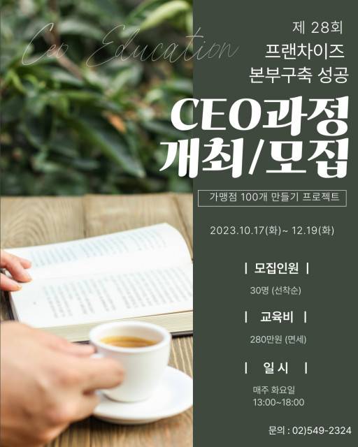 이에 맥세스컨설팅은 제28기 맥세스 프랜차이즈 본부 구축 성공 CEO 과정을 10월 17일부터 매주 화요일 총 10주간 서울 종각 맥세스컨설팅 교육장에서 진행한다.