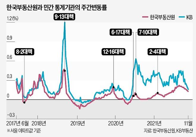 통계 조작이 지속되면서 부동산원 통계의 신뢰성 문제가 대두됐다. 부동산원 통계가 민간 조사기관인 KB부동산, 부동산R114 등과 큰 차이를 보였기 때문이다.