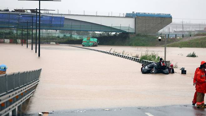 | ▲ 많은 비가 내린 7월 15일 충북 청주 흥덕구 오송읍 궁평제2지하차도에 차량이 침수됐다는 신고가 접수돼 소방 당국과 경찰이 수색작업을 하고 있다. |
