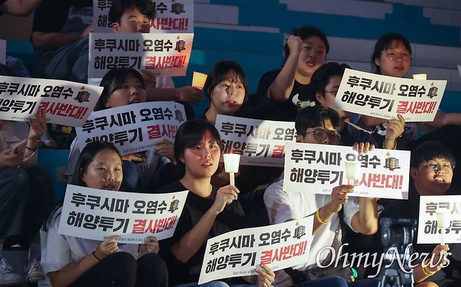 | ▲ 7일 오후 서울 세종문화회관앞 계단에서 일본방사성오염수해양투기저지공동행동 주최로 ‘일본 방사성 오염수 해양투기 중단! 방류 용인 윤석열 정권 규탄! 촛불문화제’가 열렸다. |