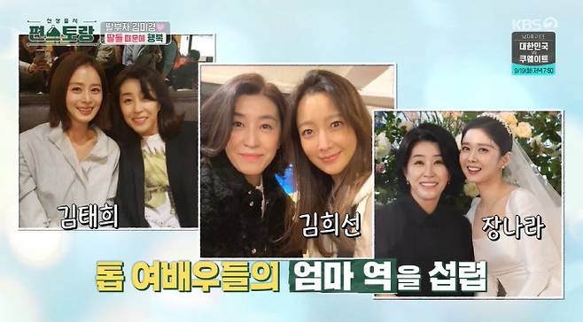 명세빈은 "한국의 톱 여배우들 다 선배님이랑 같이 하지 않았냐"고 하자, 김미경은 "딸 진짜 많다"고 했다. 김미경은 장나라, 김태희, 최강희, 박신혜, 공효진, 박민영, 정유미 등 다양한 작품에서 수많은 톱 배우들의 엄마 역할을 맡았다.