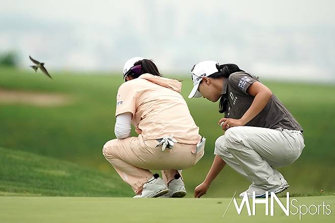 (MHN스포츠 인천, 박태성 기자) 15일 인천광역시 중구에 위치한 클럽72 컨트리클럽(파72ㅣ6,713야드)에서 'OK금융그룹 읏맨 오픈'(총상금 8억 원, 우승상금 1억 4,400만 원) 1라운드가 열린가운데, 성유진이 1번홀 그린에서 디봇을 정리하고 있다.