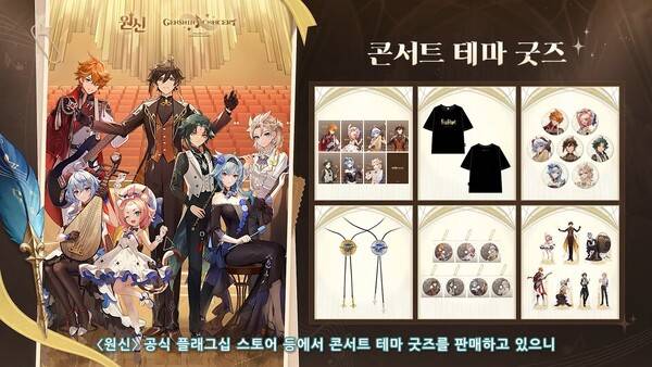 데이터 공개 이후 Michael은 원신 외부 콘텐츠도 소개했다. 서울은 11월 11~12일 개최된다. 원신 공식 플래그십 스토어에서는 콘서트 테마 굿즈를 판매 중이다. 아크릴 피규어, 배지, 키링, 티셔츠 등 다양한 굿즈가 준비된 것을 볼 수 있다.