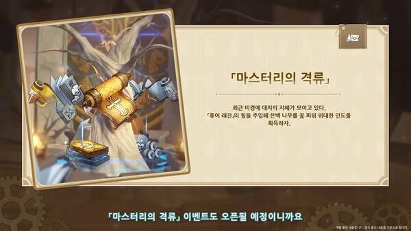 비경에 대지의 지혜가 모이고 있다. 퓨어 레진의 힘을 주입해 은백 나무를 꽃 피워 위대한 인도를 획득하는 이벤트다. 캐릭터를 육성하는 유저라면 절대 놓치지 말 것을 권한다.