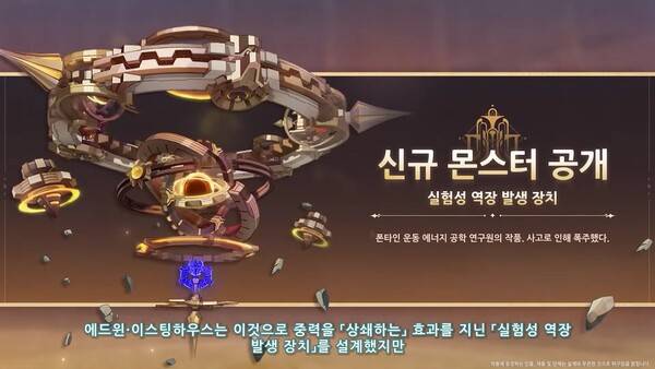 에드윈 이스팅하우스는 아르케 광석으로 중력을 상쇄하는 효과를 지닌 신규 몬스터 '실험성 역장 발생 장치'를 설계했다. 하지만 폭발 사고가 발생했고 원하던 성과를 이루지 못했고 실험성 역장 발생 장치도 폭주했다. 해당 몬스터는 과학원 옛터 어딘가에 머무르고 있다.