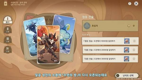 격투 모드 업데이트 외에도 일곱 성인의 소환에 수련의 방이 다시 오픈된다. 수련의 방에서는 다양한 추가 옵션을 선택해 점수를 얻어 보상을 획득할 수 있다.