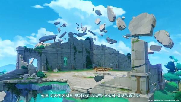 Qi Le 디자이너는 황폐하고 처량한 분위기를 강조하기 위해 노력했다. 덕분에 우아하고 장엄한 폰타인성에 비해 옅은 슬픔이 느껴진다. 그는 폭발 이후 불안정한 느낌을 살려내는 작업이 정말 어려웠다는 소감을 남겼다.