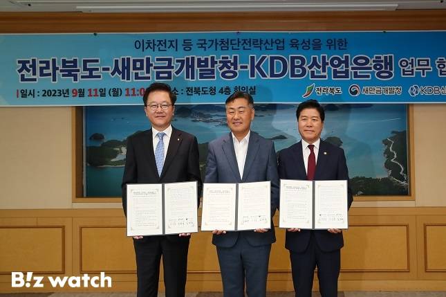 KDB산업은행과 전라북도, 새만금개발청은 '국가첨단전략산업'과 지역특화산업 육성을 통한 지방경제 활성화를 위해 업무협약을 체결하고 공동 추진한다.