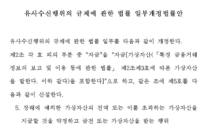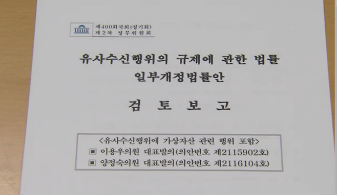 국회에서는 1년 전 테라·루나 사태로 불거진 가상자산 관련 사기 피해의 심각성을 보고 이를 막기 위한 '유사수신행위규제에 관한 법률 개정안'이 2건 발의됐습니다.