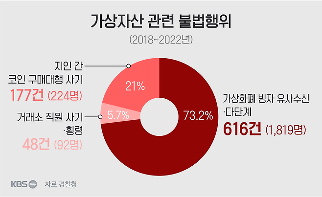 지난 5년간 가상자산 관련 불법행위가 증가하면서 피해 금액은 5조 원에 달합니다.