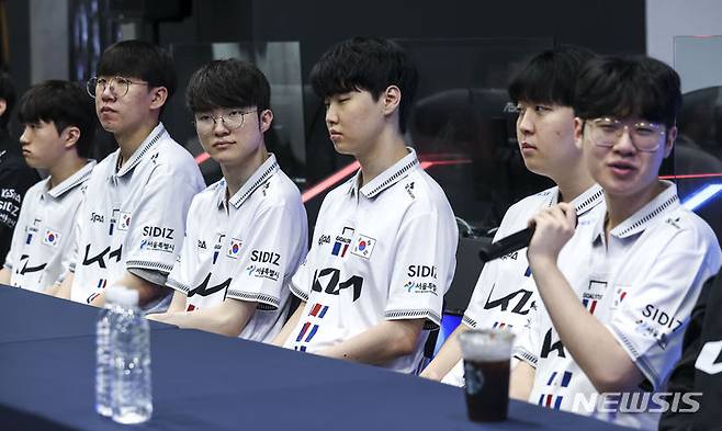 [서울=뉴시스] 정병혁 기자 = 16일 서울 마포구 한국e스포츠협회에서 2022 항저우아시안게임 e스포츠 리그 오브 레전드 국가대표 선수단 미디어데이가 열리고 있다. 2023.09.16. jhope@newsis.com