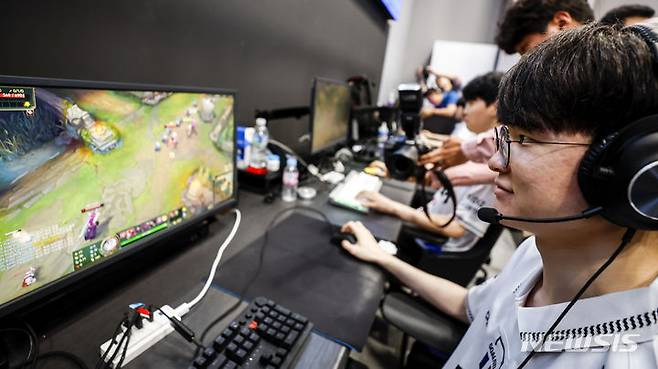 [서울=뉴시스] 정병혁 기자 = 2022 항저우아시안게임 e스포츠 리그 오브 레전드 국가대표 이상혁(Faker)이 16일 서울 마포구 한국e스포츠협회에서 훈련을 하고 있다. 2023.09.16. jhope@newsis.com