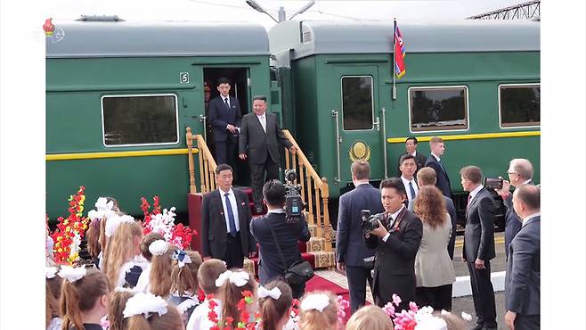 [서울=뉴시스] 김정은 북한 국무위원장이 지난 16일(현지시각) 블라디보스토크 인근 공군과 해군 기지를 시찰했다고 17일 북한 조선중앙TV가 보도했다. (사진=조선중앙TV 캡처) 2023.09.17. photo@newsis.com *재판매 및 DB 금지