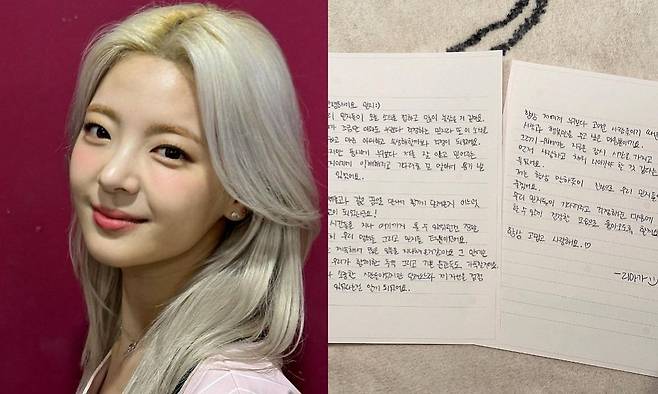 리아도 손 편지를 통해 "우리 믿지(있지 팬덤 명)들이 소식을 접하고 많이 놀랐을 것 같다. 내가 조금만 아파도 누구보다 걱정하는 믿지라 또 이 소식을 접하고 마음 아파하고 속상해할까 봐 걱정됐다. 하지만 동시에 누구보다 나를 잘 알고 믿어주는 믿지이기에 이해해 주고 기다려 줄 걸 알아서 용기 낼 수 있었다"라고 전했다.
