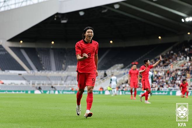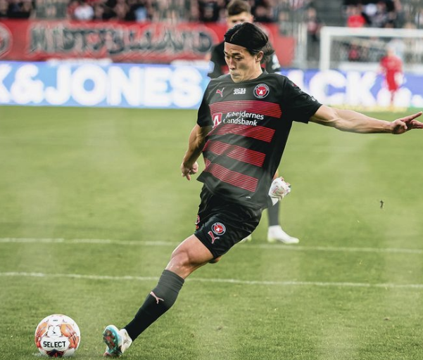 지난해 카타르 월드컵에서 가나전 헤더 멀티골을 터트려 한국 축구사 첫 월드컵 한 경기 두 골 주인공이 된 조규성인 덴마크 진출 첫 골을 머리로 받아넣는 등 체격이 큰 덴마크 선수들 사이를 헤집고 수준급 포스트 플레이를 펼치고 있다.