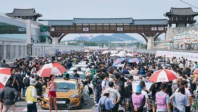 | ▲ 2022 전남 GT 대회 당시 그리드워크. 경주장 안을 걸어다니면서 경주차량을 구경하고 선수들을 만날 수 있는 시간이다. |