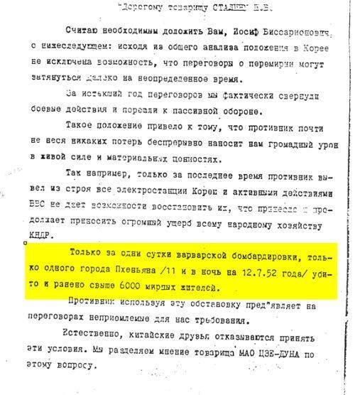 (1952년 7월 16일, 김일성이 스탈린에게 보낸 전보 중)