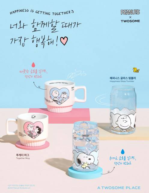 투썸플레이스는 일교차가 커 차갑거나 따뜻한 음료를 번갈아 찾게 되는 초가을, 어떤 음료든 사랑스러운 피너츠 캐릭터들과 함께 보다 특별하게 즐길 수 있도록 변온 머그와 글라스 굿즈를 준비했다며, 투썸플레이스와 피너츠가 다양한 협업 메뉴와 굿즈, 이벤트를 통해 전하는 행복의 메시지를 일상 속에서 느끼실 수 있길 바란다고 밝혔다.