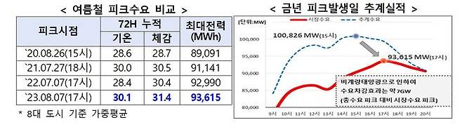 이날에는 93.6GW을 기록하며 역대 여름철 전력수요로도 가장 높은 수준으로 나타났다.